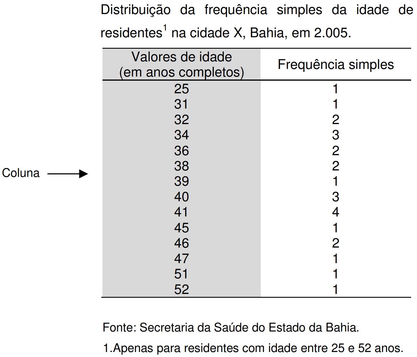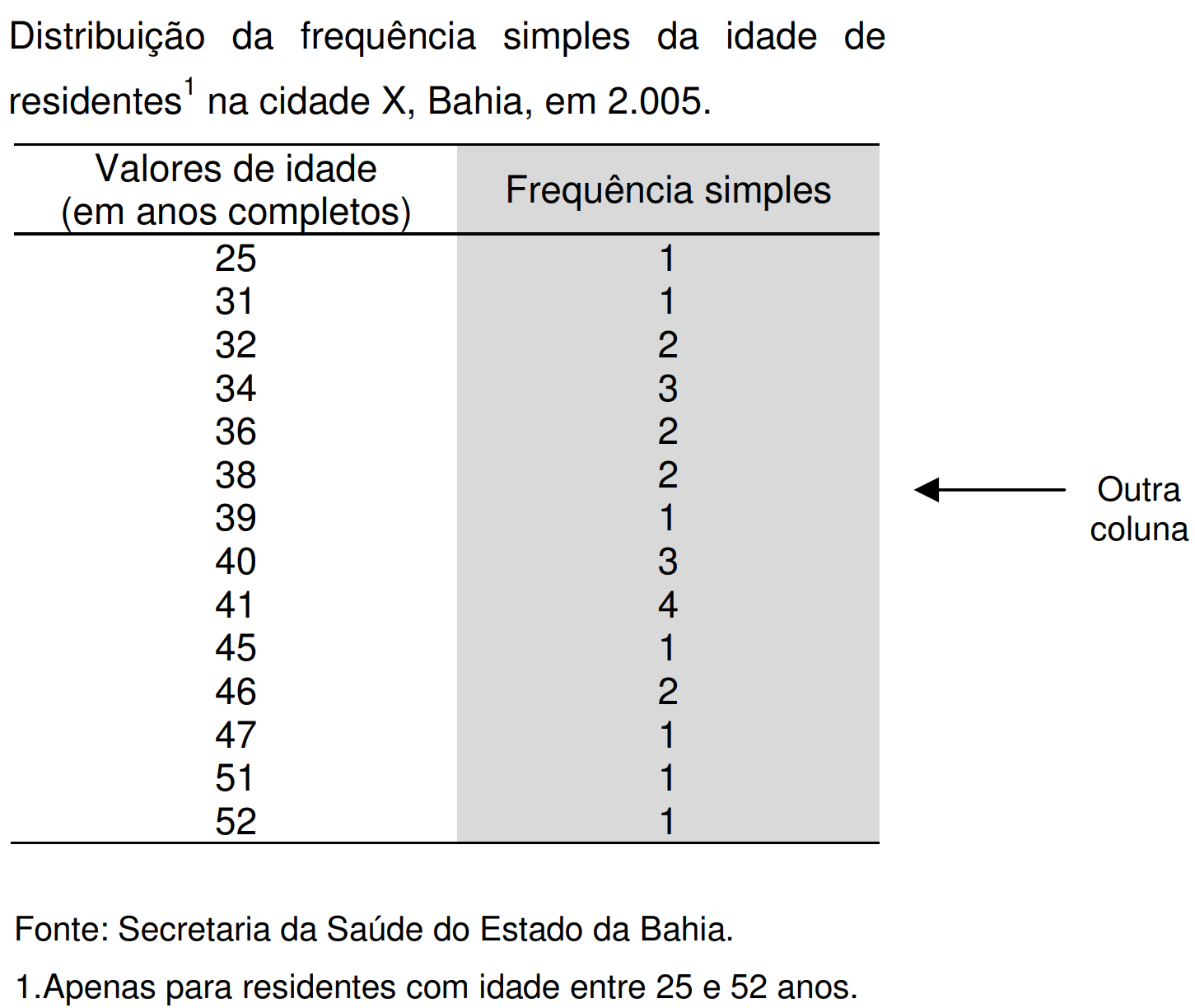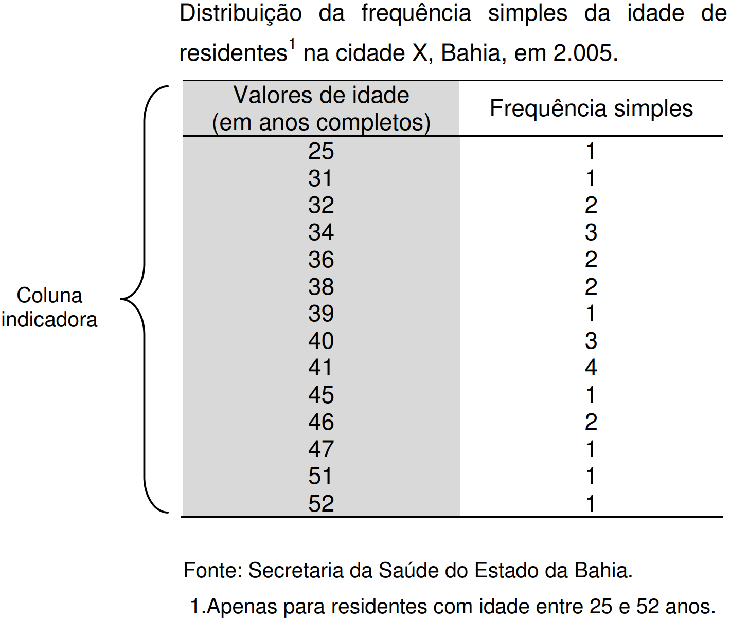 | Idade | Frequência simples |