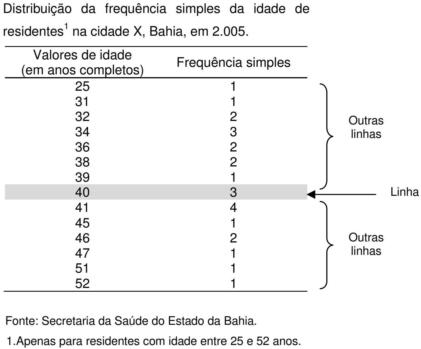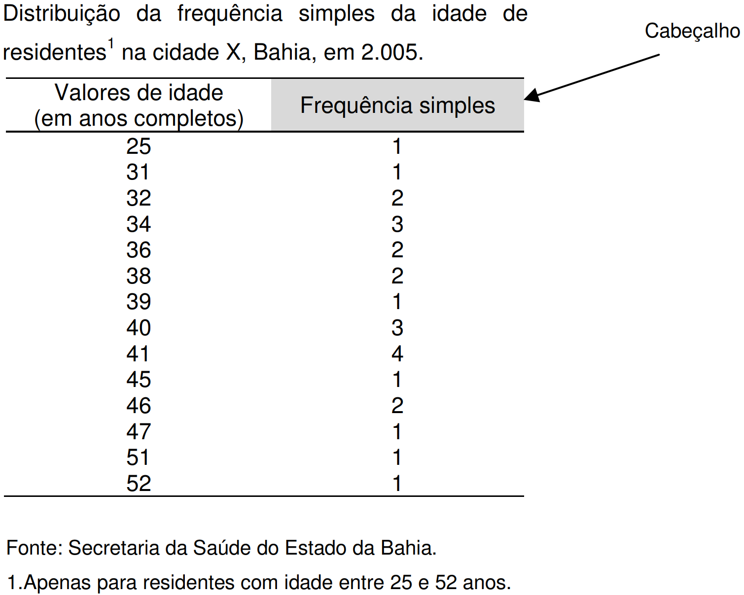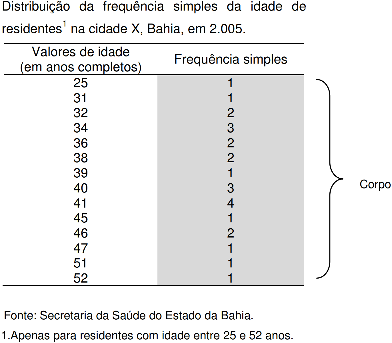| Idade | Frequência simples |