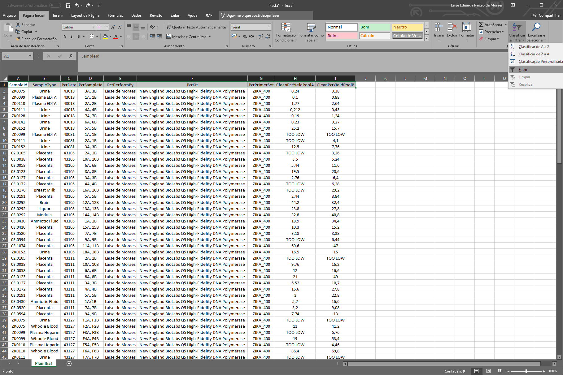 Na aba "Página Inicial": clicar em "Classificar e Filtrar"