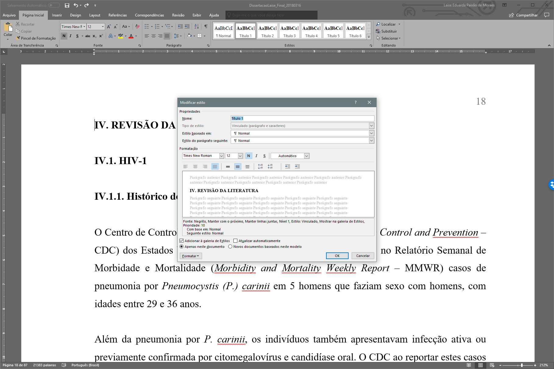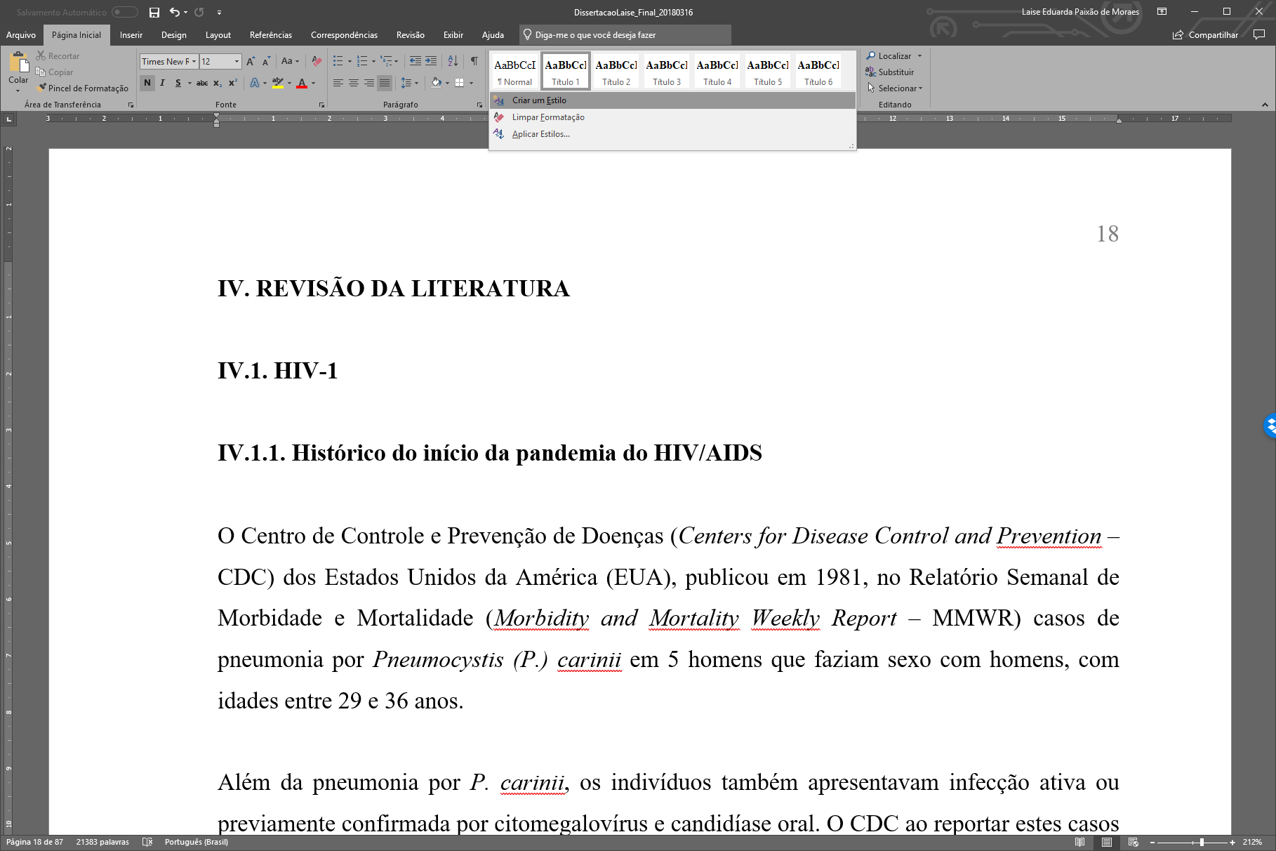 Na aba "Página Inicial": clicar em "Estilos", e "Criar um Estilo"