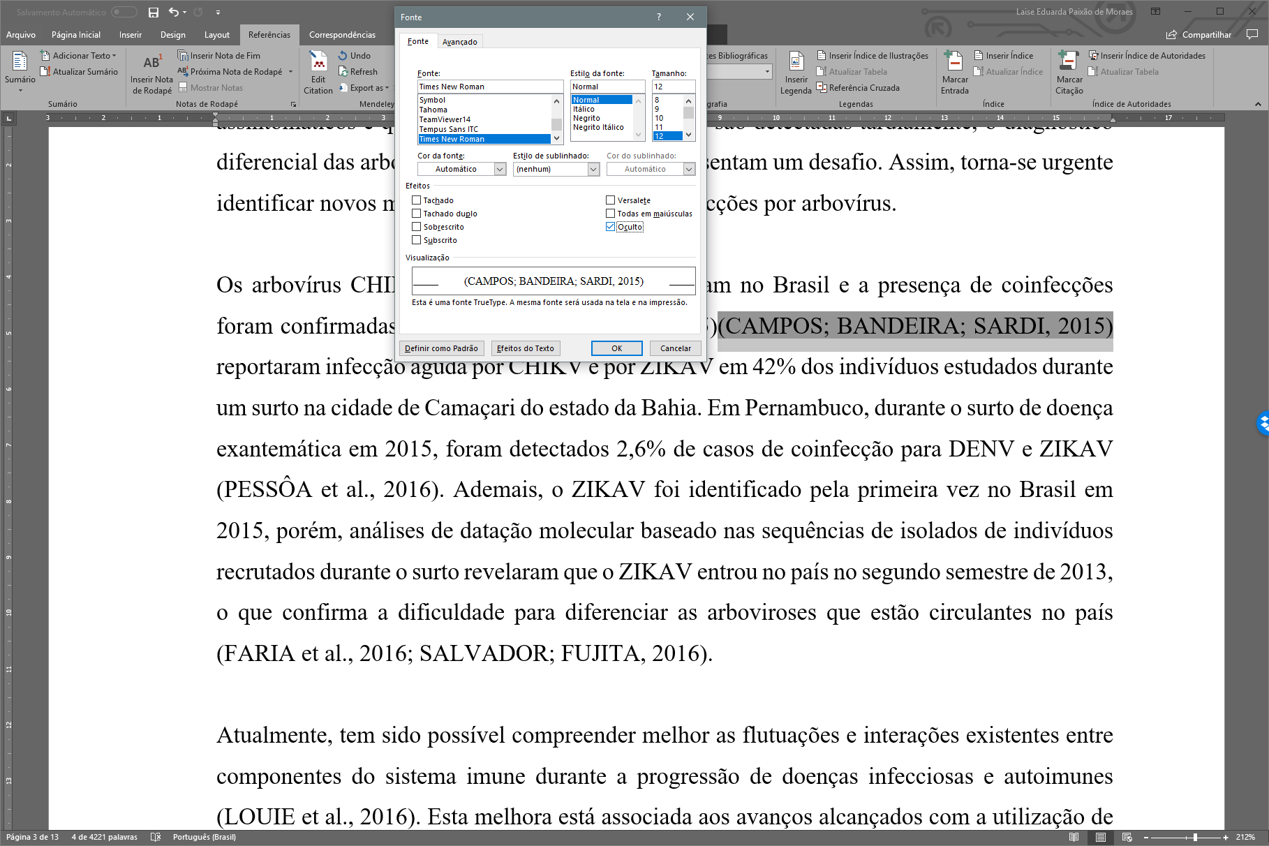 Clicar com botão direito do mouse na seleção e ir em "Fonte"