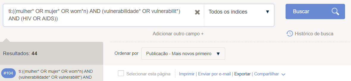 Diferente do PubMed, o SciELO não tem opção de limitador de título+resumo em suas opções principais