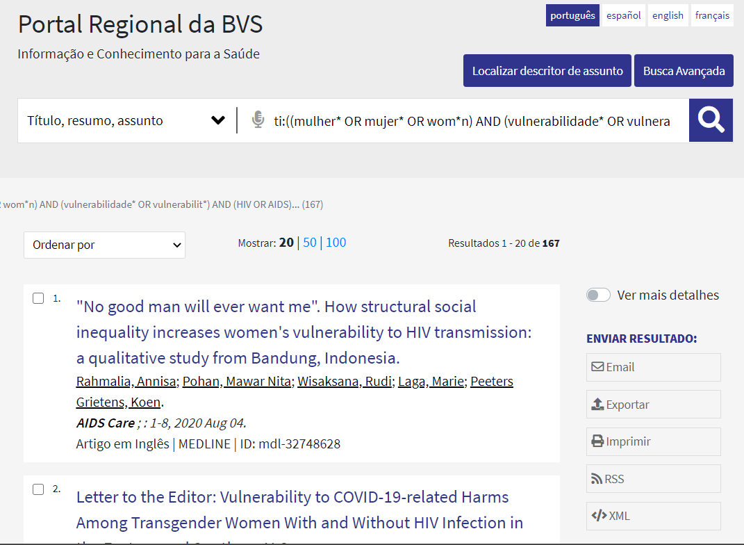A diferença crucial é que no Scielo título+resumo era subject. No BVS é tw.