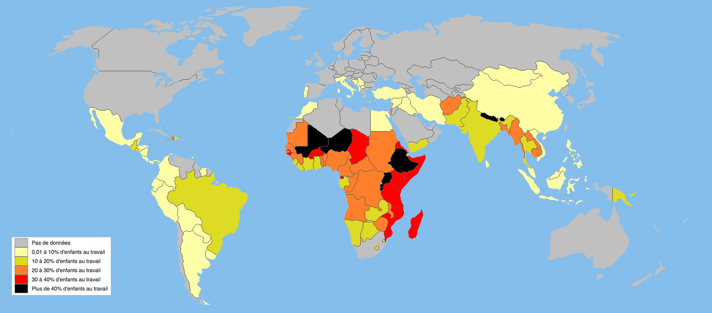 A notre époque le travail des enfants est encore présent mais moins .Dans certains pays les enfants sont toujours en esclavage pour aider leurs familles à avoir plus d'argent