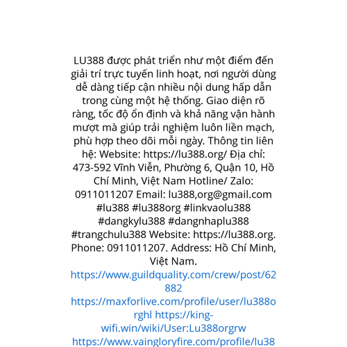 Website: https://lu388.org. LU388 được nhiều người quan tâm nhờ khả năng duy trì chất lượng ổn định và cách vận hành rõ ràng. Nội dung được sắp xếp hợp lý, dễ theo dõi, giúp người dùng chủ động hơn trong quá trình trải nghiệm mỗi ngày. Thông tin liê