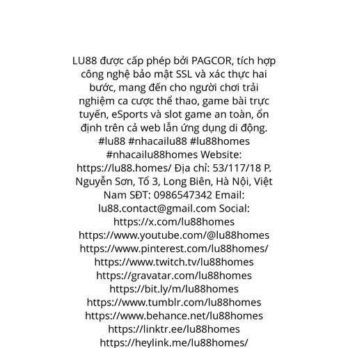 Website: https://community.goldposter.com/members/lu88homes/profile/ LU88 được cấp phép bởi PAGCOR, tích hợp công nghệ bảo mật SSL và xác thực hai bước, mang đến cho người chơi trải nghiệm ca cược thể thao, game bài trực tuyến, eSports và slot game a