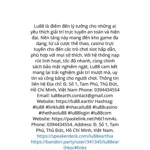 Website: https://pastelink.net/h6t1nm4s. Lu88 là điểm đến lý tưởng cho những ai yêu thích giải trí trực tuyến an toàn và hiện đại. Nền tảng này mang đến kho game đa dạng, từ cá cược thể thao, casino trực tuyến cho đến các trò chơi slot hấp dẫn, phù h