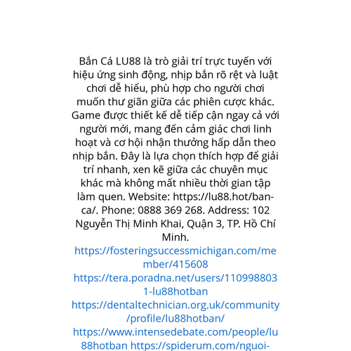 Website: https://lu88.hot/ban-ca/. Bắn Cá LU88 là trò giải trí trực tuyến với hiệu ứng sinh động, nhịp bắn rõ rệt và luật chơi dễ hiểu, phù hợp cho người chơi muốn thư giãn giữa các phiên cược khác. Game được thiết kế dễ tiếp cận ngay cả với người mớ