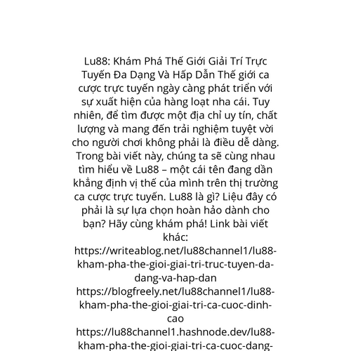 Website: https://lu88channel1.tistory.com/1 Lu88: Khám Phá Thế Giới Giải Trí Trực Tuyến Đa Dạng Và Hấp Dẫn Thế giới ca cược trực tuyến ngày càng phát triển với sự xuất hiện của hàng loạt nha cái. Tuy nhiên, để tìm được một địa chỉ uy tín, chất lượng