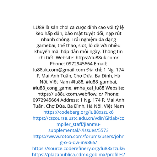 Website: https://lu88ukcom.webflow.io/ LU88 là sân chơi ca cược đỉnh cao với tỷ lệ kèo hấp dẫn, bảo mật tuyệt đối, nạp rút nhanh chóng. Trải nghiệm đa dạng gamebai, thể thao, slot, lô đề với nhiều khuyến mãi hấp dẫn mỗi ngày. Thông tin chi tiết: Web