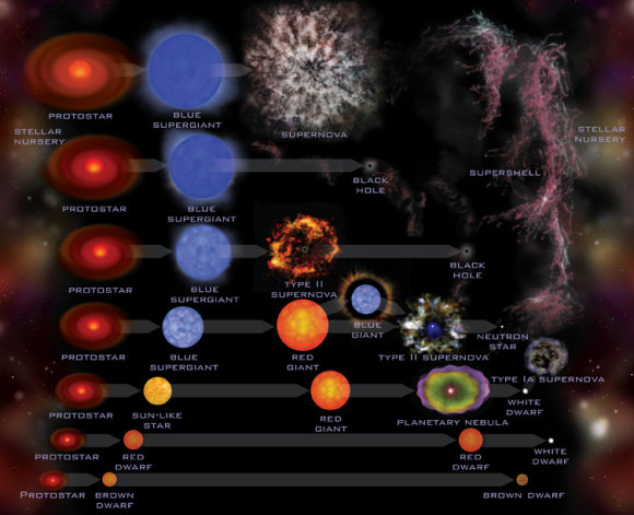 - the star runs out of nuclear fuel, some of its mass flows into its core