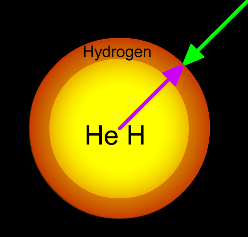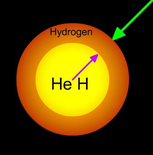 - before the star can collapse too far, though, this contraction heats up a shell of hydrogen around the core of the star to the point that it can support nuclear fusion