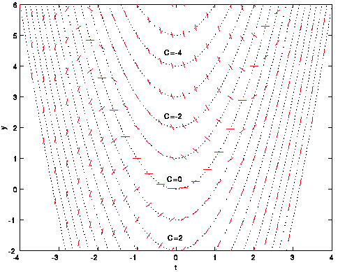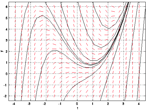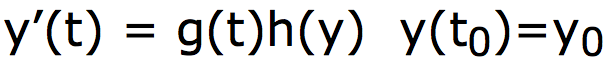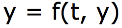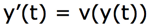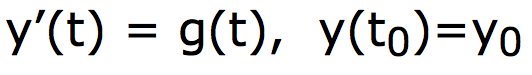 The goal: determine the unknown function y(t) whose derivative satisfies the above condition and which passes through the point
