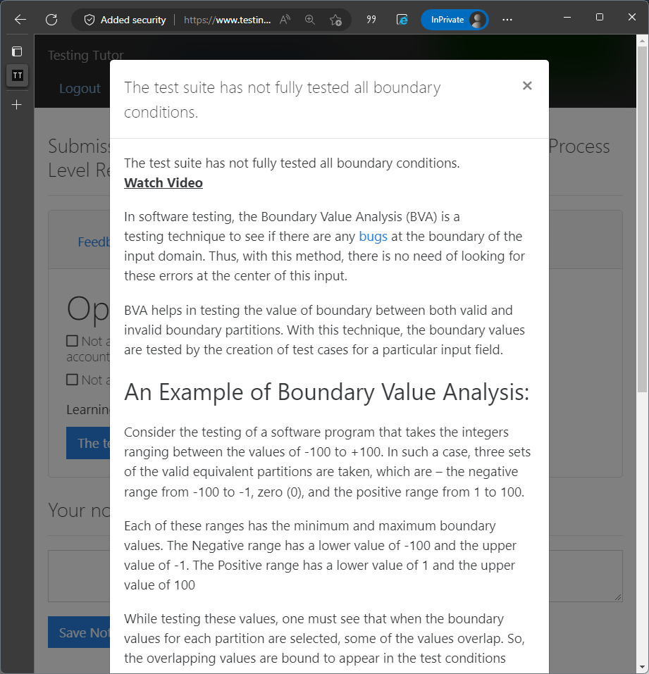 Provide students with Conceptual Feedback (feedback that informs the student which underlying fundamental testing concepts their test suite does not cover and provides hints and resources for the student to initiate their own learning process).