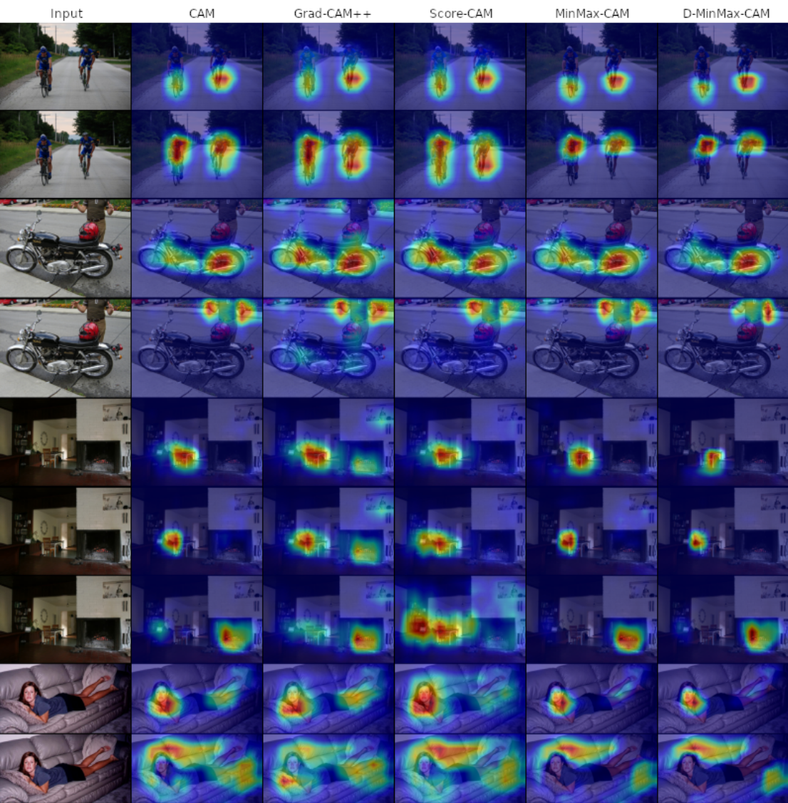 - L. David, H. Pedrini, and Z. Dias. MinMax-CAM: Increasing Precision of Explaining Maps by Contrasting Gradient Signals and Regularizing Kernel Usage (Springer). In 17th International Joint Conference on Computer Vision, Imaging and Computer Graphics Theory and Applications (VISAPP), CCIS Series, 2023.
