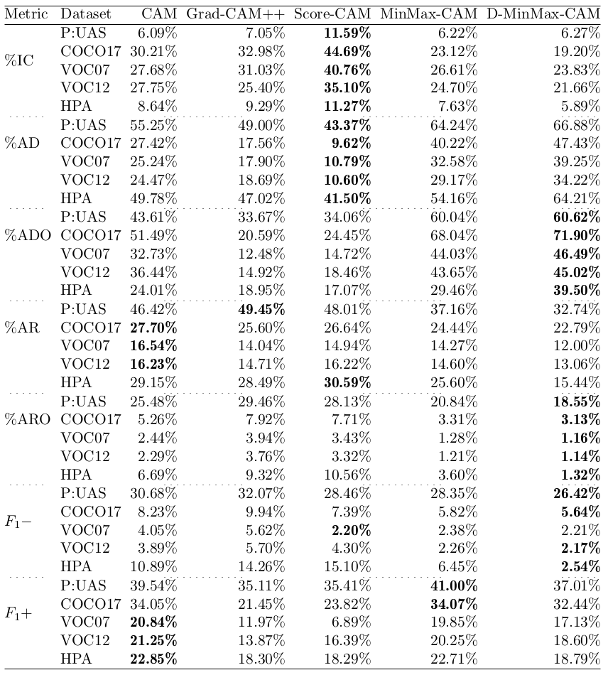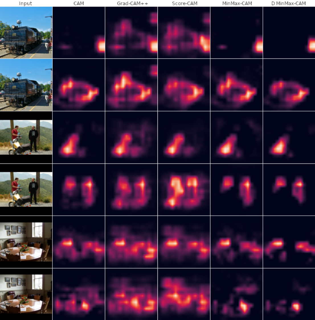 - L. David, H. Pedrini, and Z. Dias. MinMax-CAM: Improving focus of CAM-based visualization techniques in multi-label problems. In 17th International Joint Conference on Computer Vision, Imaging and Computer Graphics Theory and Applications (VISAPP), pages 106–117. INSTICC, SciTePress, 2022.
