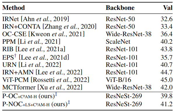 Quantitative Results over VOC 2012 P-NOC +C²AM-H