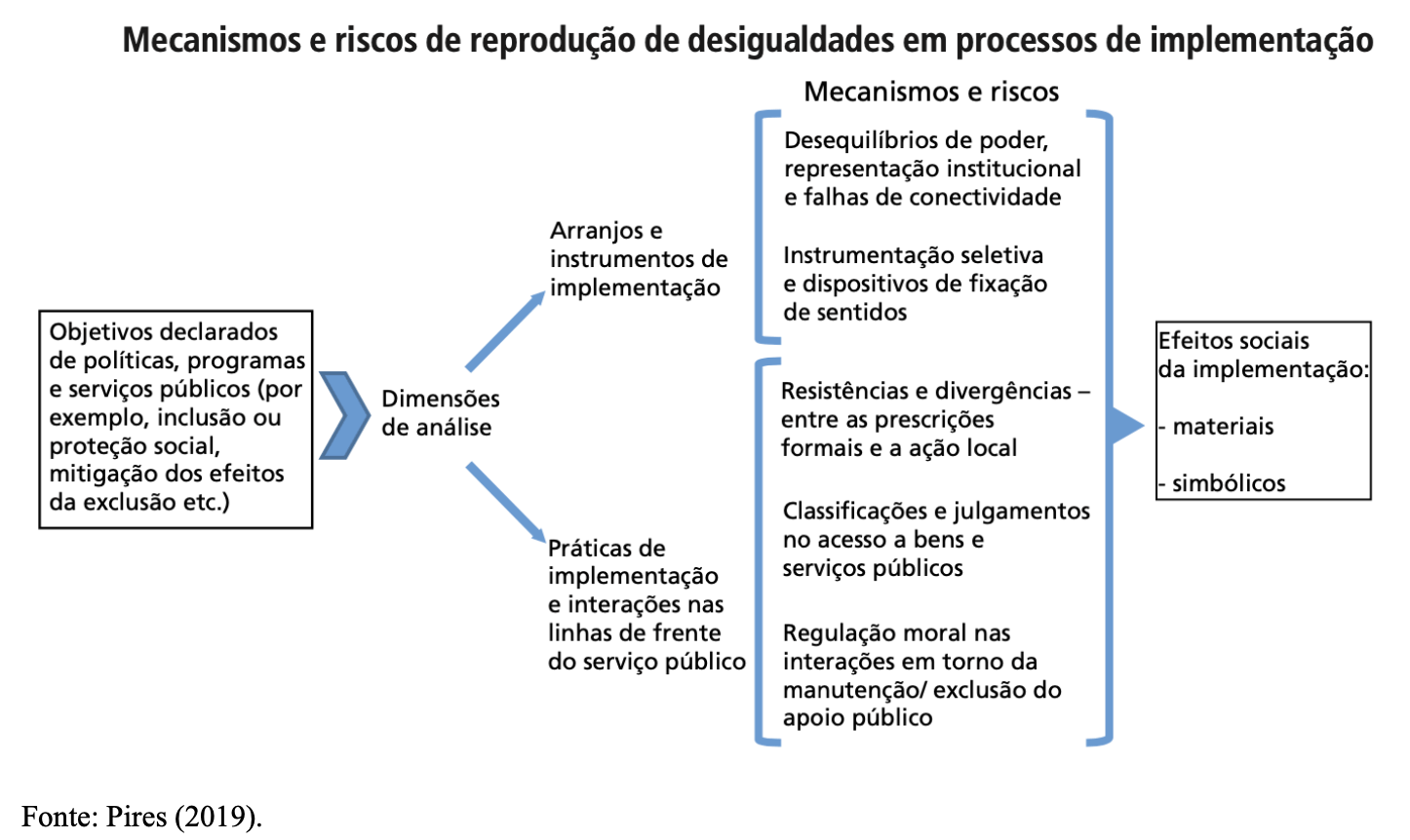 PIRES, R. R. C. (Org.). Implementando desigualdades: reprodução de desigualdades na implementação de políticas públicas. (13-46). Rio de Janeiro: Ipea, 2019. https://www.ipea.gov.br/portal/images/stories/PDFs/livros/livros/190612_implementando_desigualdades.pdf.