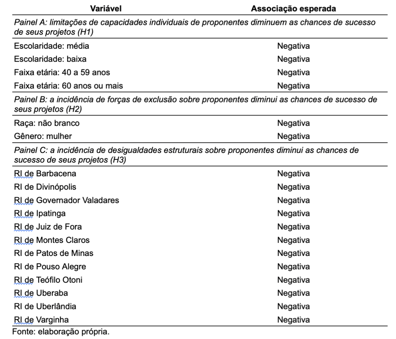 H3: a incidência de desvantagens estruturais sobre proponentes diminui as chances de sucesso de seus projetos.
