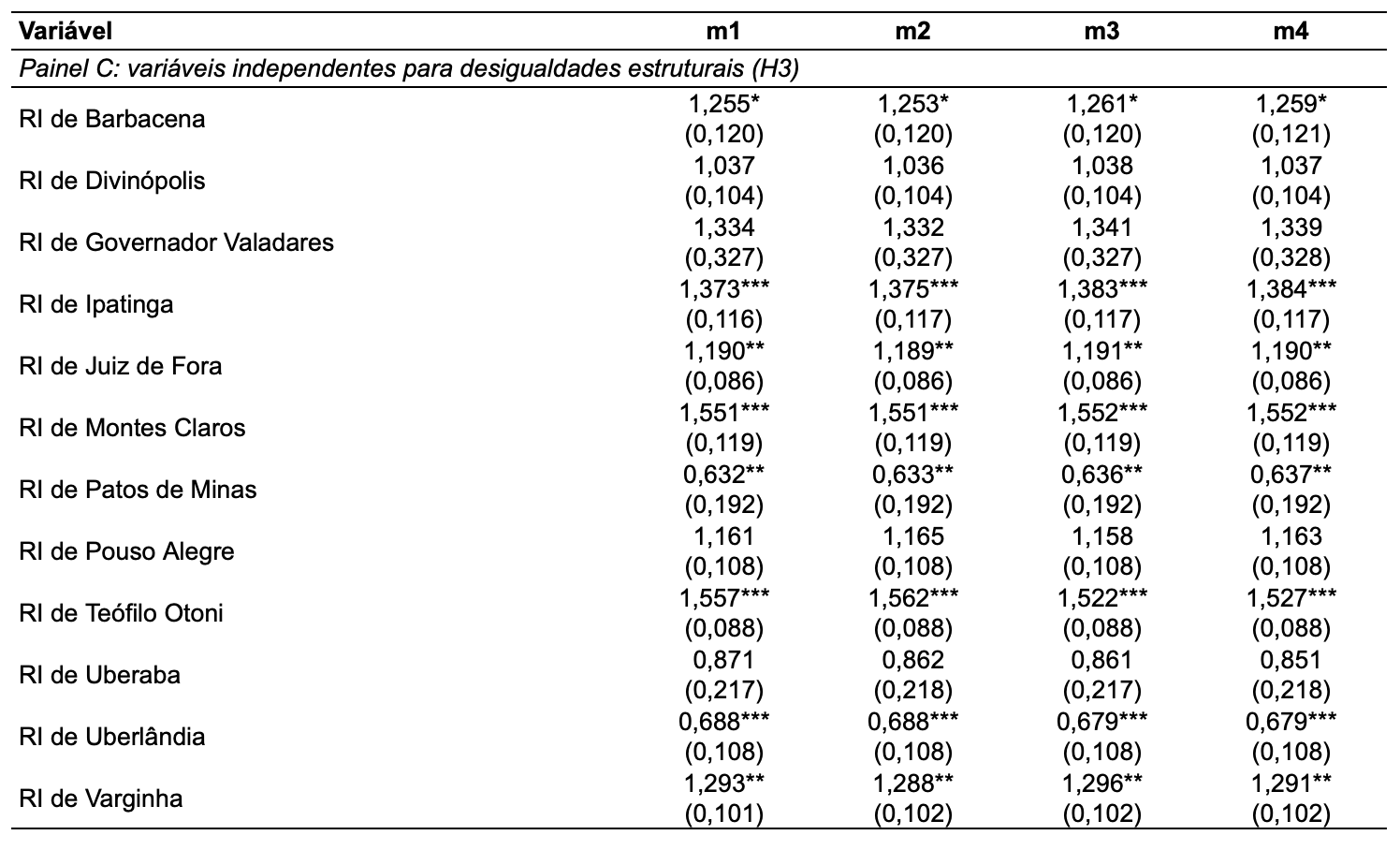 2. 2 RIs apresentam razões de chance negativas, em alinhamento com as expectativas.