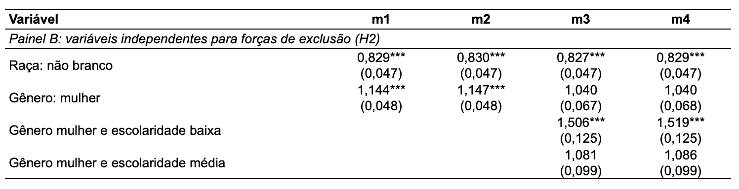 H2: a incidência de forças de exclusão sobre proponentes diminui as chances de sucesso de seus projetos.
