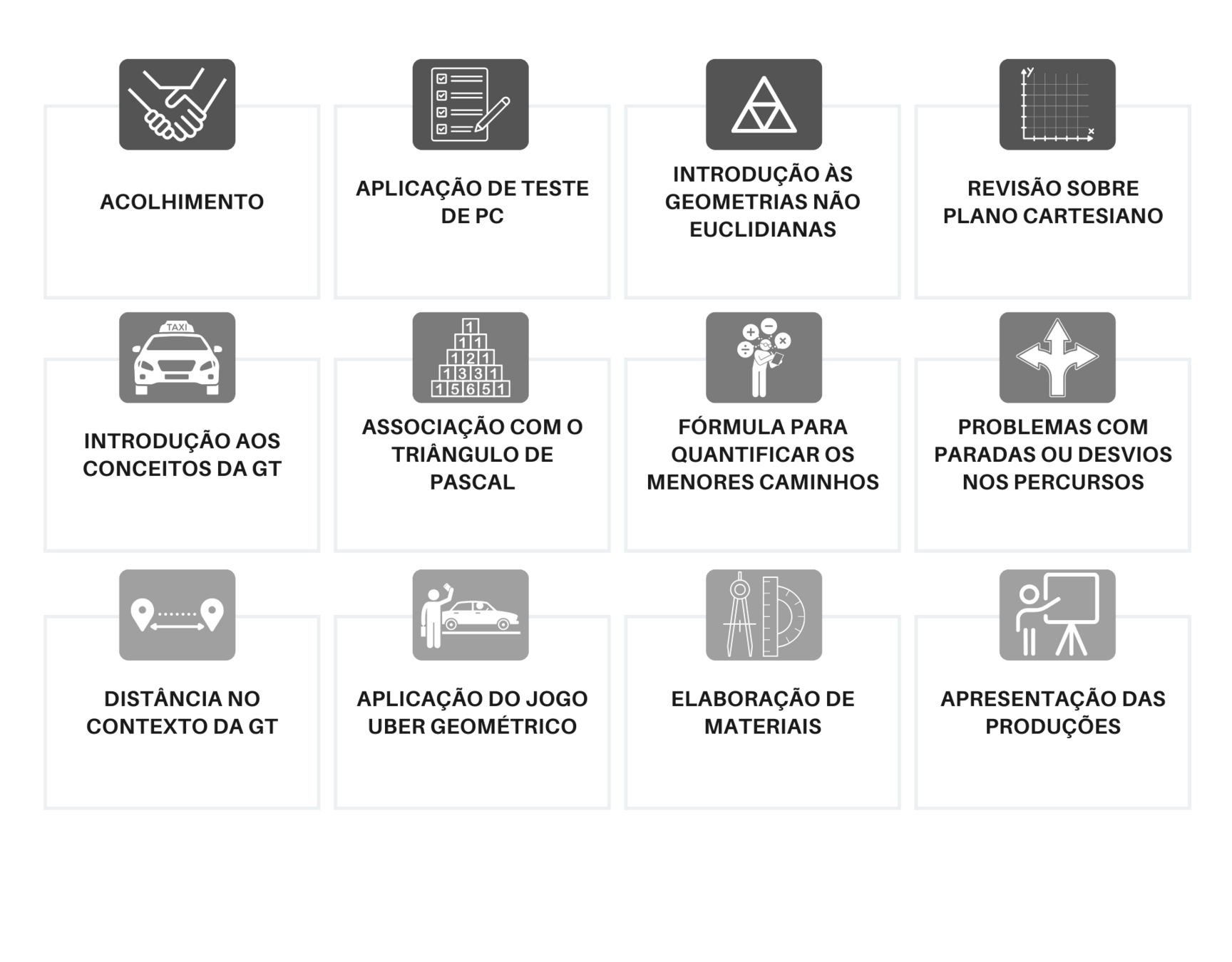 • Produzir materiais didáticos que articulem habilidades do Pensamento Computacional e conteúdos da Geometria do Táxi;
