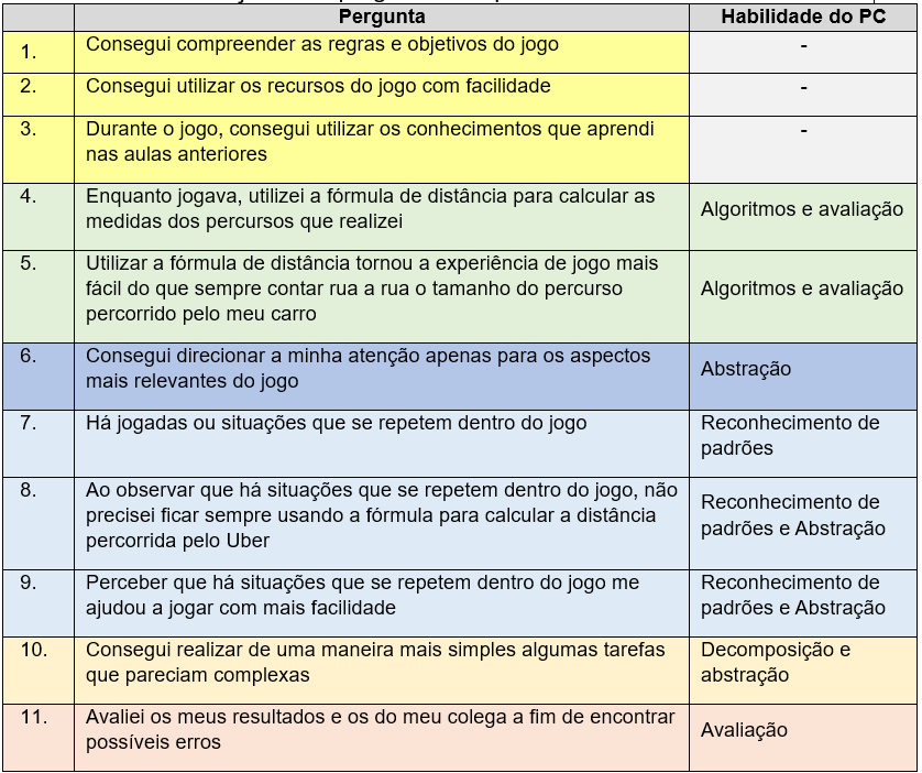 Analisar as relações entre aprendizagem da Geometria do Táxi e habilidades do Pensamento Computacional