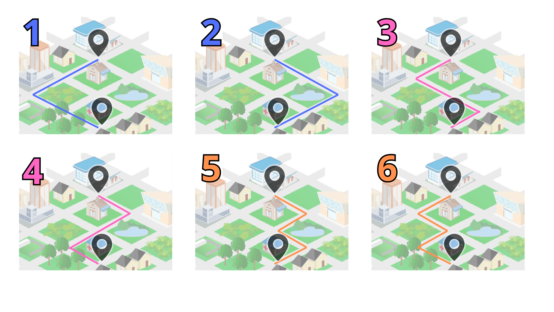 E4: Dá na mesma coisa, quatro “ruas” (trechos de ruas) para todos.