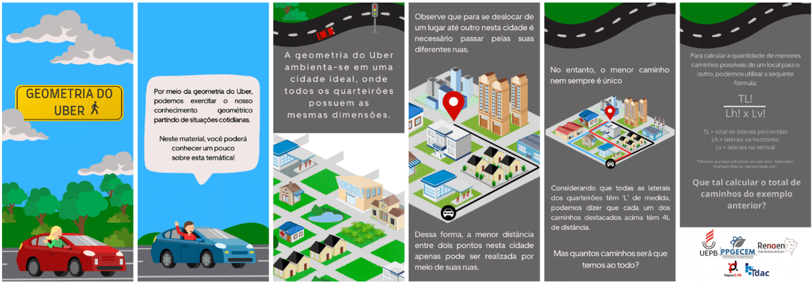 Elaboração de estratégias para contagem e representação dos menores caminhos possíveis que podem ser percorridos de um lugar até outro, seguindo as ruas de um mapa.