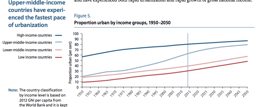 2.5 billion added to urban population by 2050. But 90% of urban growth concentrated in developing nations.