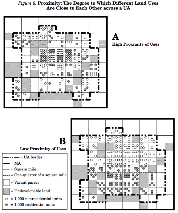 Proximity is the degree to which different land uses are close to each other across a UA.