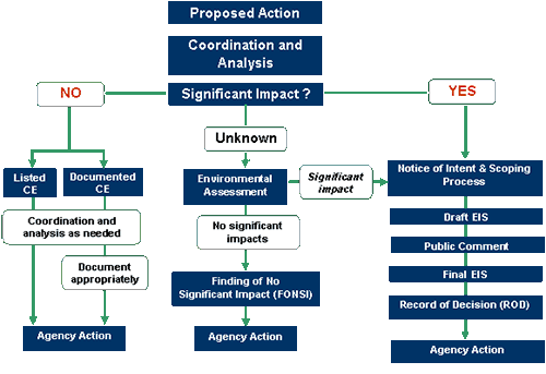 - Decision making tool that ensures thorough consideration of alternative actions and public comment