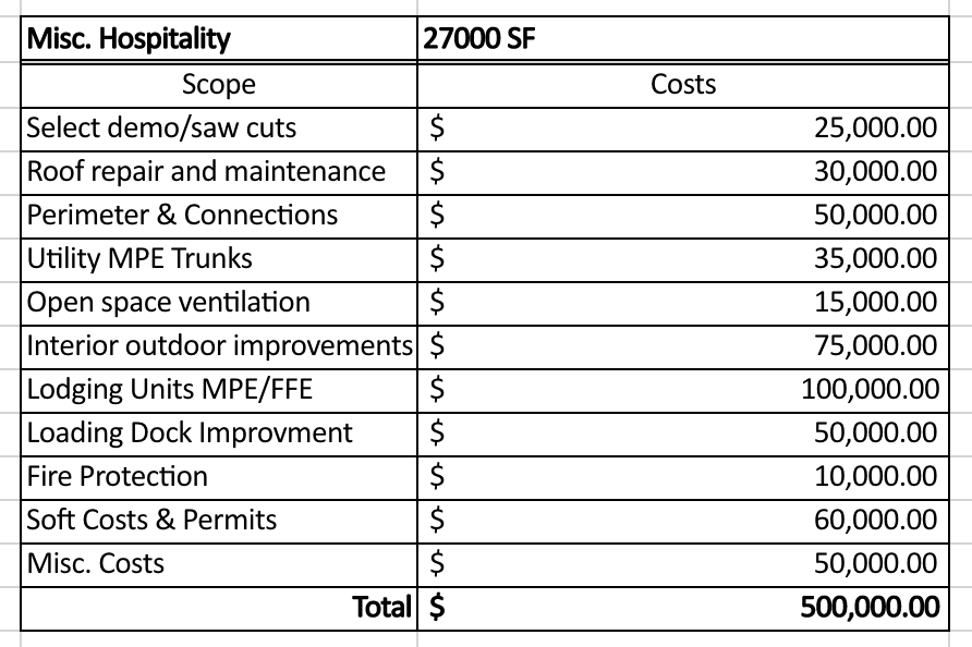 Primary scope of work: Structural/Environ investigation, MEP prep, Site improvements including loading dock space and trailer hookups, Parking lot as necessary.