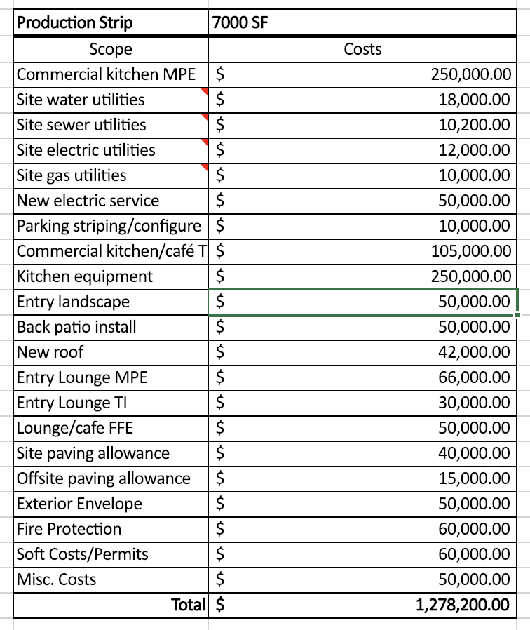 Primary scope of work: Structural/Environ investigation, Commercial kitchen MPE and equipment, Complete TI, New roof, Cafe MPE