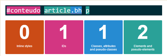 - Pontuação de especificidade da CSS. http://bit.ly/2fxECmD