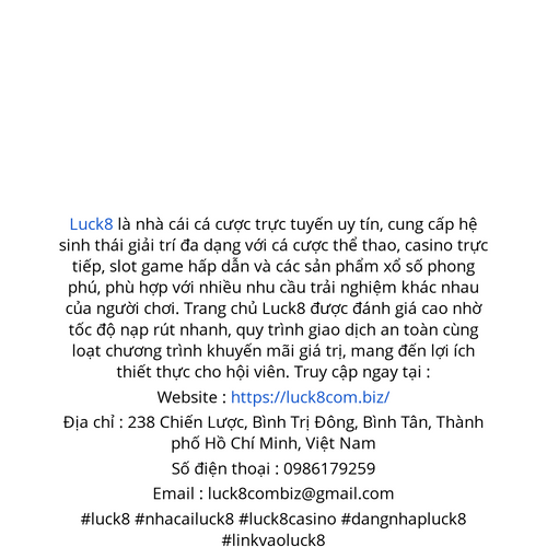 Luck8 là nhà cái cá cược trực tuyến uy tín, cung cấp hệ sinh thái giải trí đa dạng với cá cược thể thao Website : https://luck8com.biz/