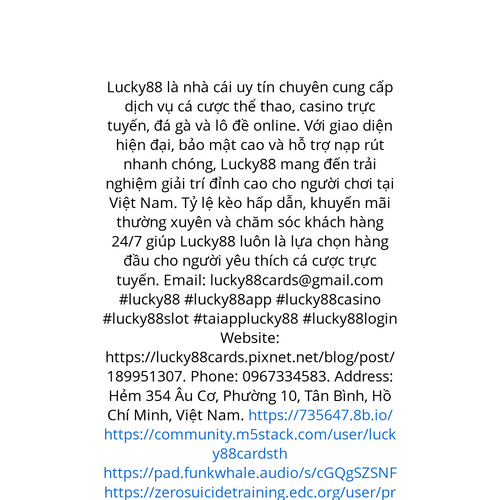 Website: https://lucky88cards.pixnet.net/blog/post/189951307. Lucky88 là nhà cái uy tín chuyên cung cấp dịch vụ cá cược thể thao, casino trực tuyến, đá gà và lô đề online. Với giao diện hiện đại, bảo mật cao và hỗ trợ nạp rút nhanh chóng, Lucky88 man