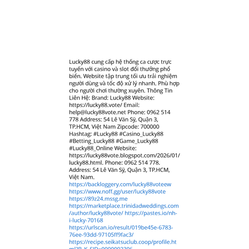 Website: https://lucky88vote.blogspot.com/2026/01/lucky88.html. Lucky88 cung cấp hệ thống ca cược trực tuyến với casino và slot đổi thưởng phổ biến. Website tập trung tối ưu trải nghiệm người dùng và tốc độ xử lý nhanh. Phù hợp cho người chơi thường