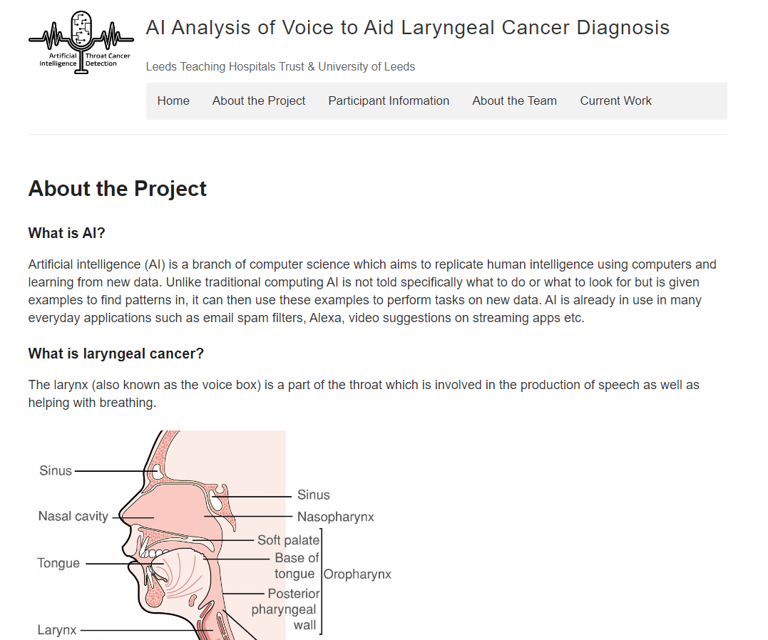 Ongoing collaboration with the NHS on AI Analysis of Voice to Aid Laryngeal Cancer Diagnosis - Mary Paterson PhD Project (CDT Medical AI)