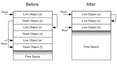 - Un GC compactante defragmenta la memoria al finalizar cada recolección. Esto puede depender de heurísticas