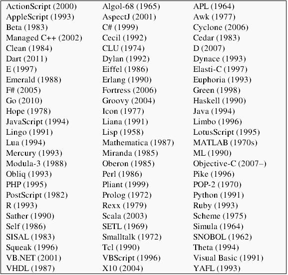 Actualmente decenas de lenguajes poseen o dependen de variadas técnicas de garbage collection para su gestión de memoria