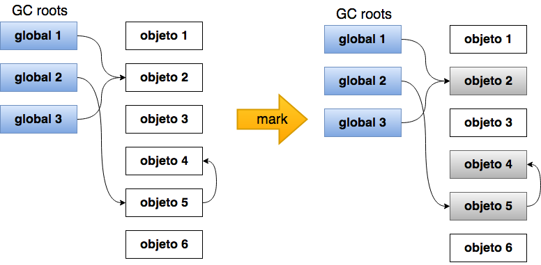 - Mark: Se recorren todas las referencias alcanzables y se las marca como tal