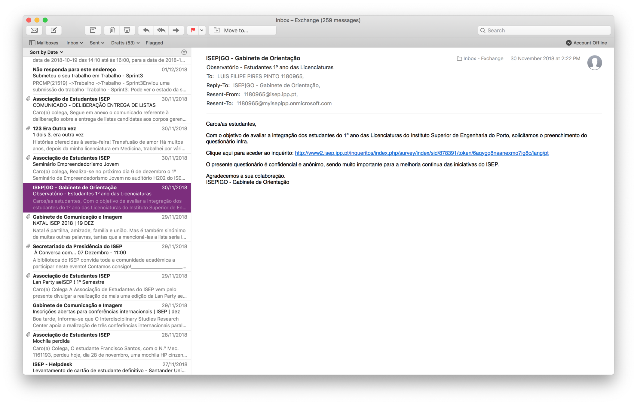 O Messenger seria uma alternativa ao atual email do ISEP, estando organizado por categorias de importância.