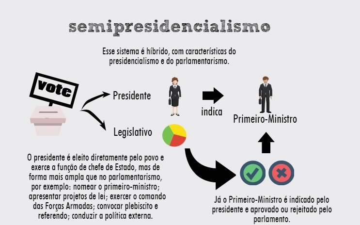 Como o nome sugere, o semipresidencialismo seria a junção dos dois. Mantém-se certas características de ambos e descartas outras.