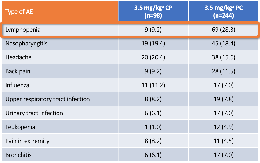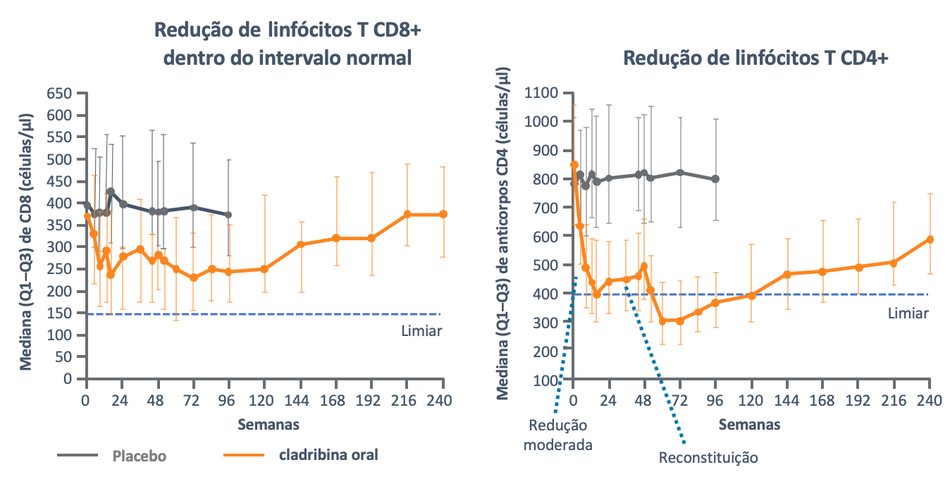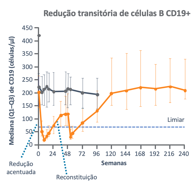 Redução expressiva de Linfócitos B e modesta de Linfócito T