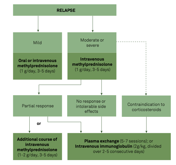 - Sua forma mais comum é ocorrer em surto e remissão; ocorre um ataque agudo com recuperação total ou parcial