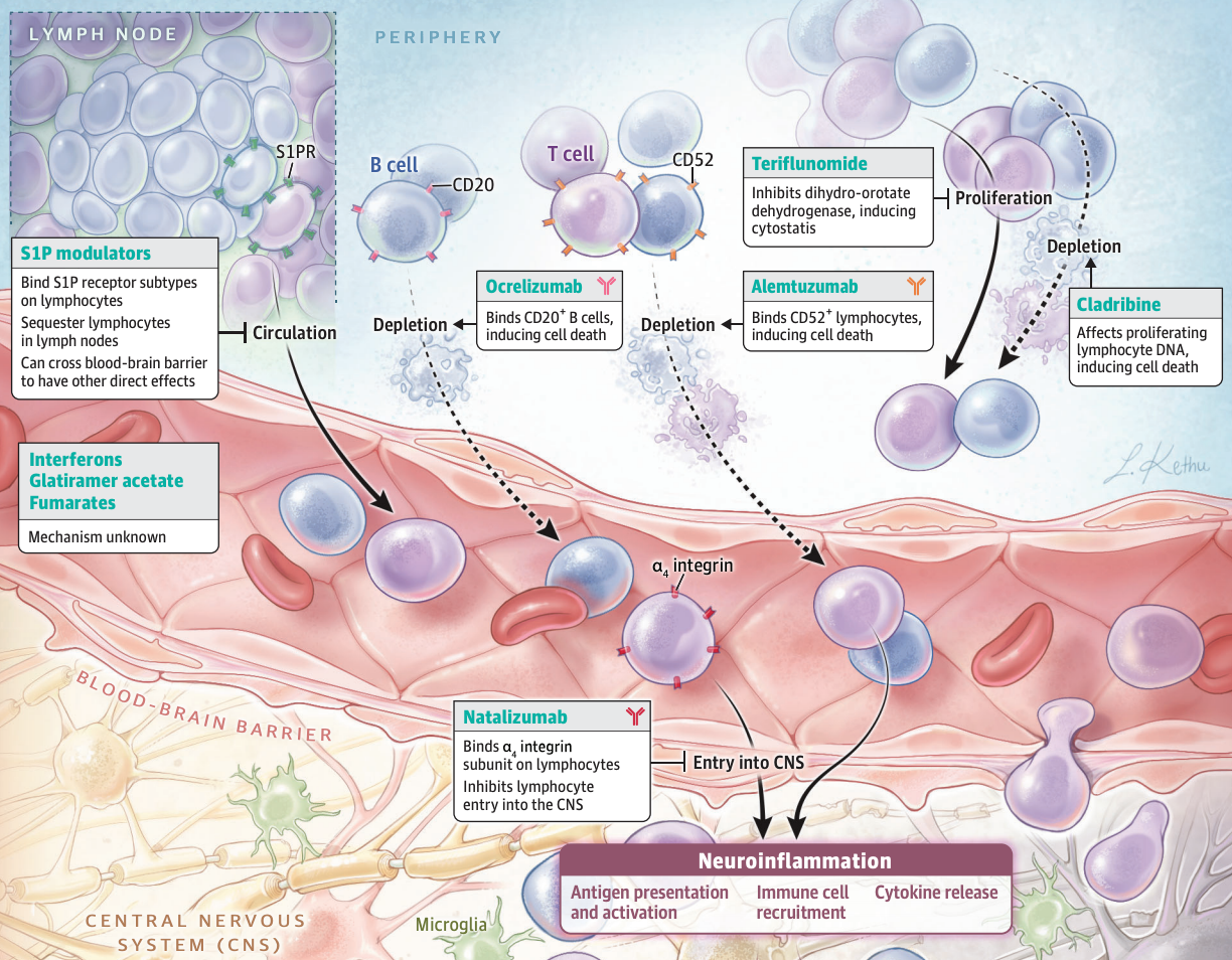 - A Nirjuína habilita o linfócito ativado a se ancorar na Barreira Hemato-Encefálica e chegar ao SNC
