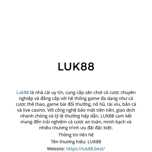 Luk88 là nhà cái uy tín, cung cấp sân chơi cá cược chuyên nghiệp và đẳng cấp với hệ thống game đa dạng như cá cược thể thao, game bài đổi thưởng, nổ hũ, tài xỉu, bắn cá và live casino. Website: https://luk88.best/