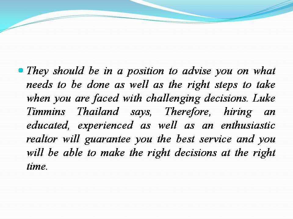 Luke Timmins Thailand - What qualities make up a good real estate agent? There are definitely a few personality characteristics that are better suited for this particular career.