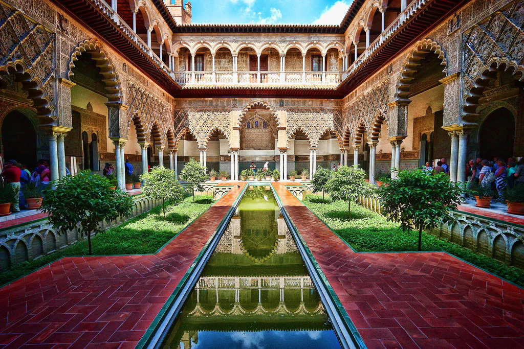 Alkazar w Sewilli – sławny pałac królewski, którego początki sięgają XI w., kiedy rezydowali tutaj przedstawiciele kalifatu kordobańskiego. Rozbudowany w latach 1350-69 przez Piotra I Okrutnego w stylu mudejar. Późniejsi królowie kontynuowali rozbudowę, przystosowując rezydencję do własnych potrzeb.